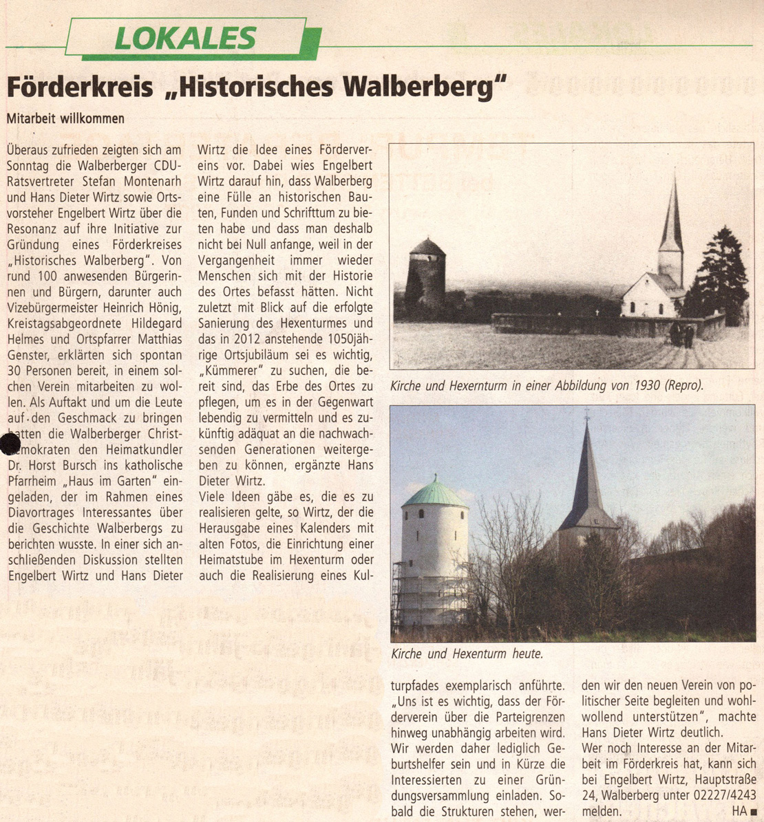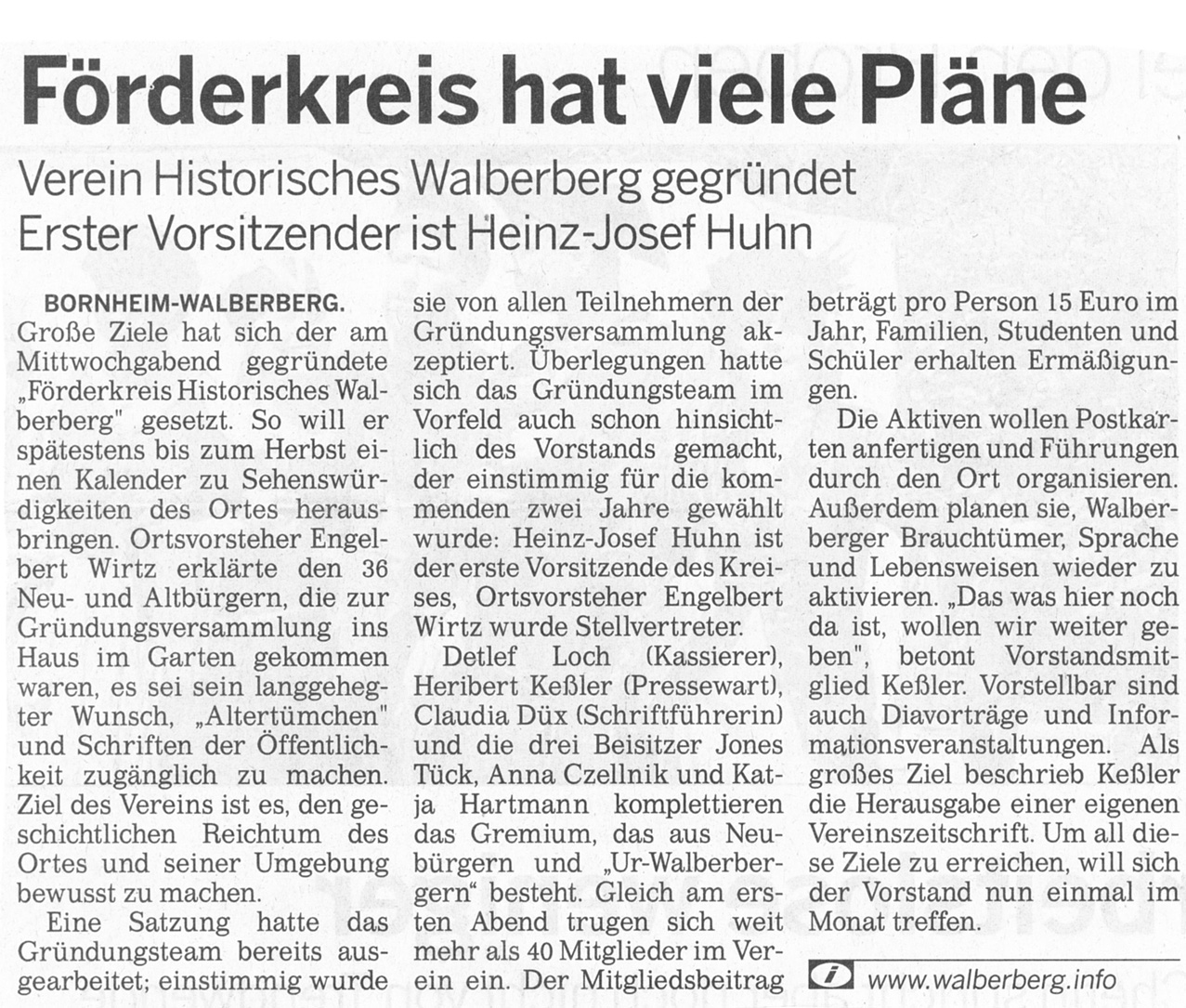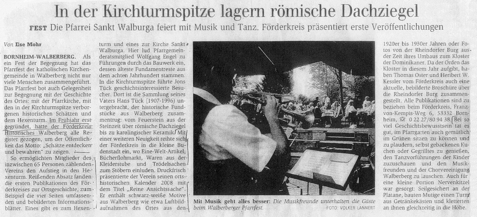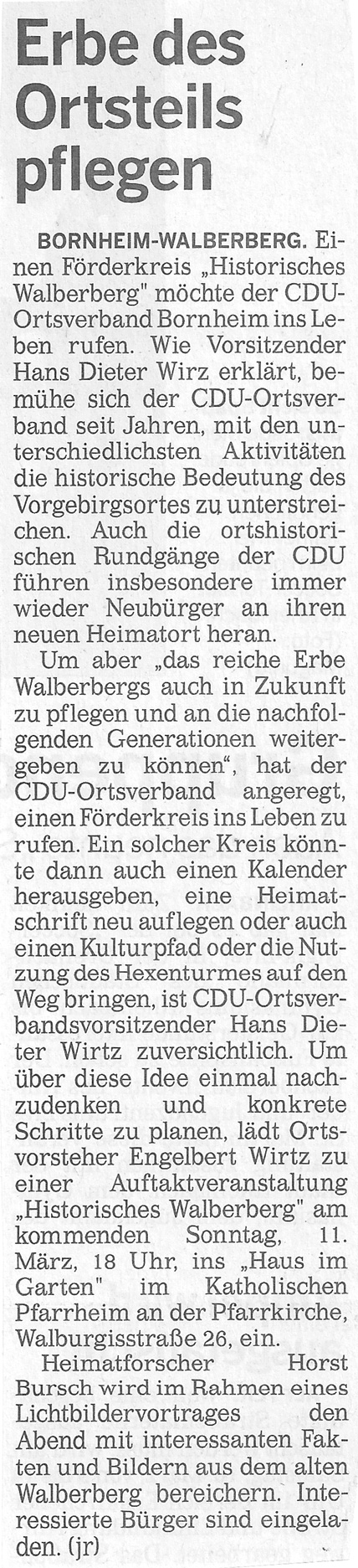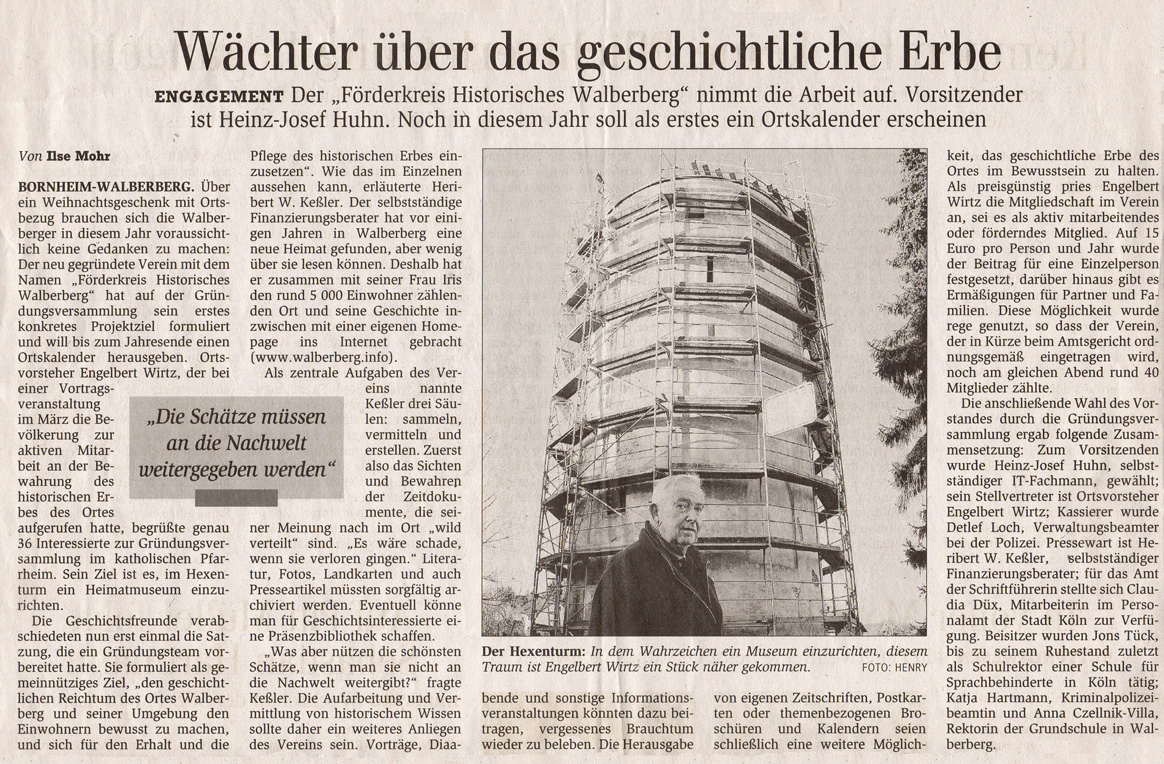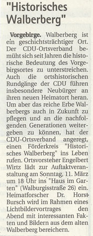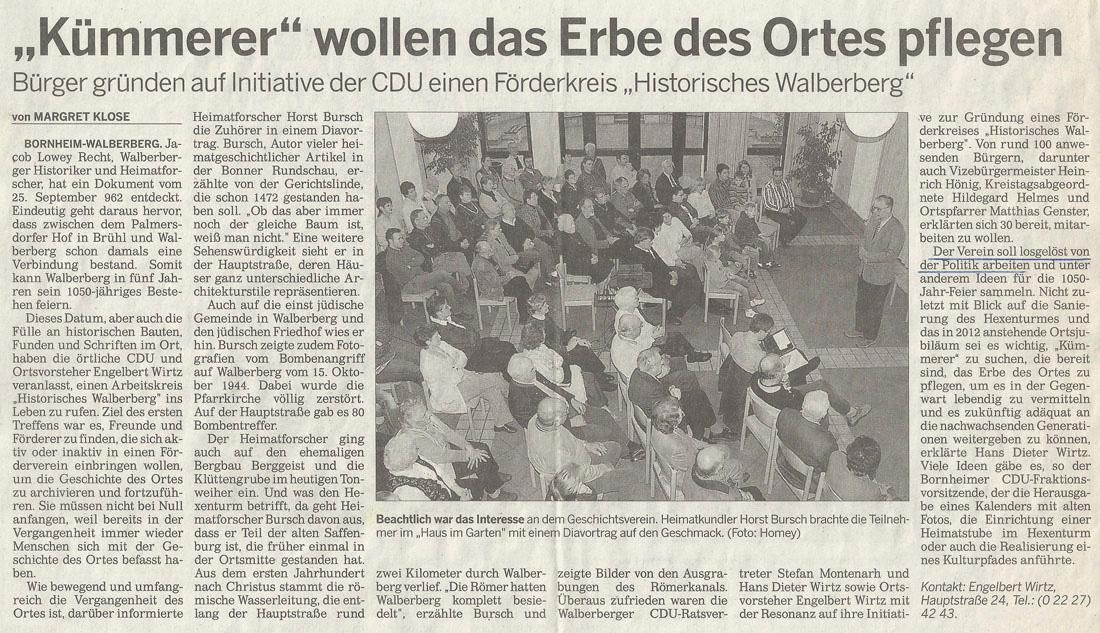Über den Förderkreis Historisches Walberberg eV und seine Veranstaltungen wird gelegentlich auch in Presse, Funk und Fernsehen berichtet.